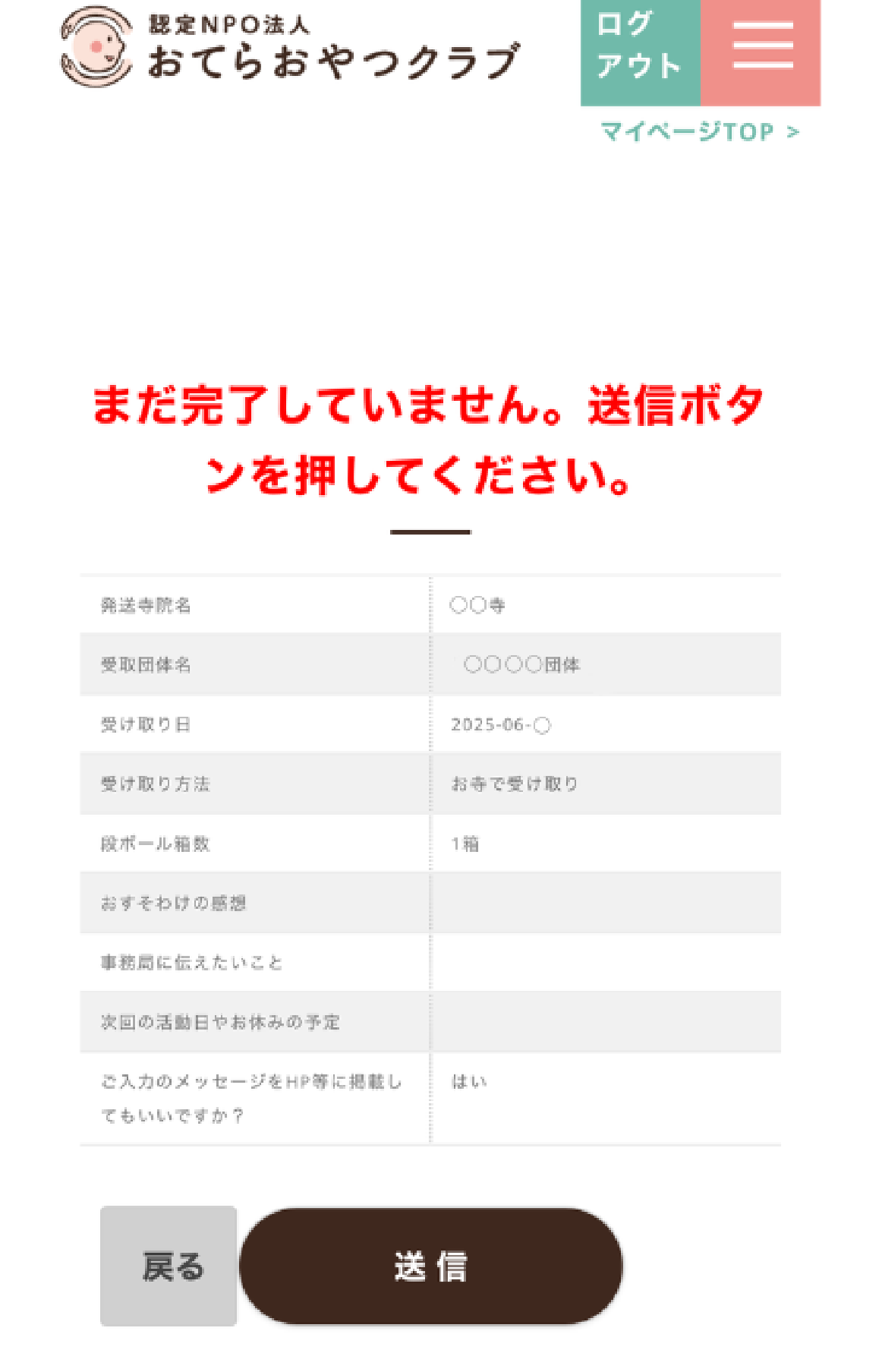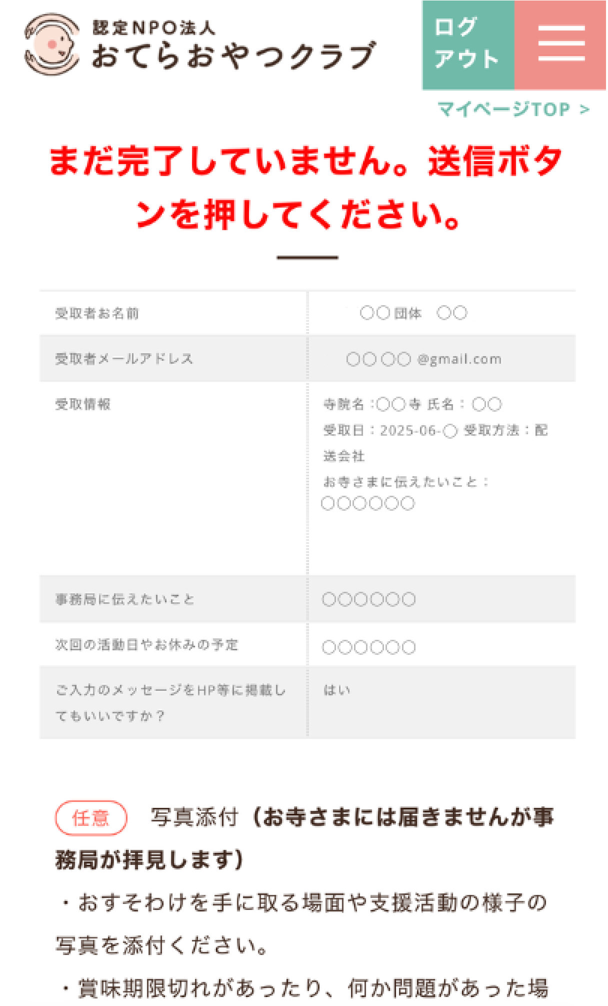 内容を確認し、未報告のままお忘れになっているおすそわけがあればご報告をお願いします。