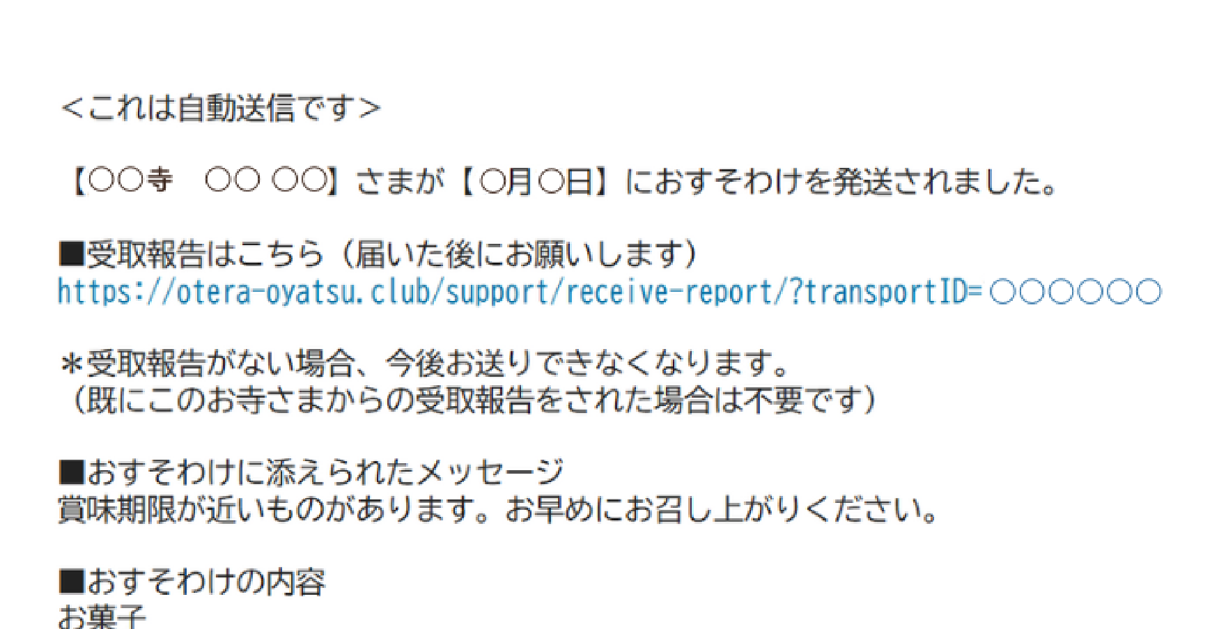 また、お寺さまがおすそわけ発送のご報告をお忘れになっている場合はURLが届きません。
